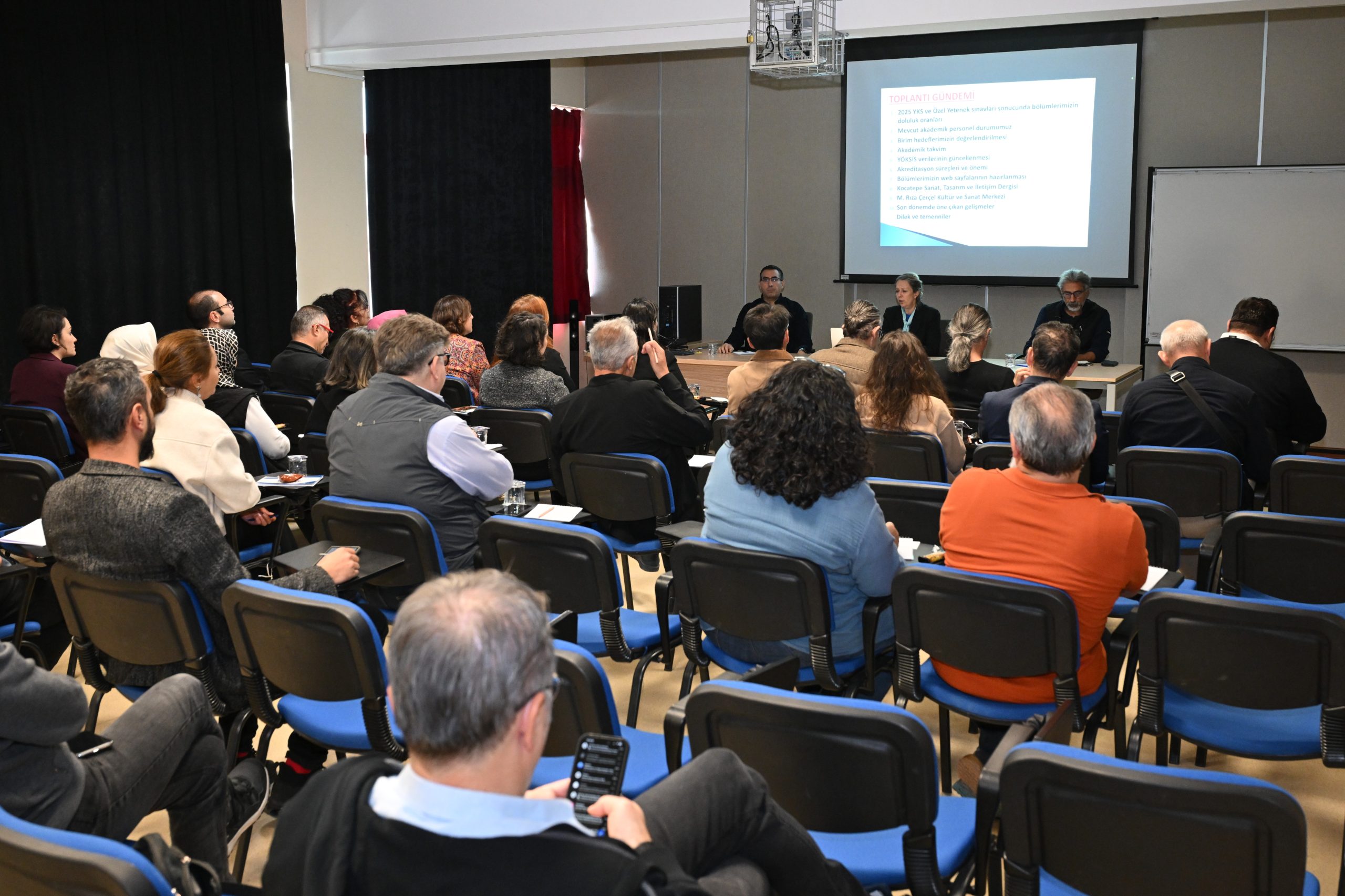 2025-2026 Eğitim-Öğretim Yılı Akademik Kurul Toplantımız, 14 Ekim tarihinde, Dekanımız Prof. Dr. Şerife Ebru Okuyucu’nun yönetiminde, Fakültemiz Film İzleme Salonunda gerçekleştirildi.