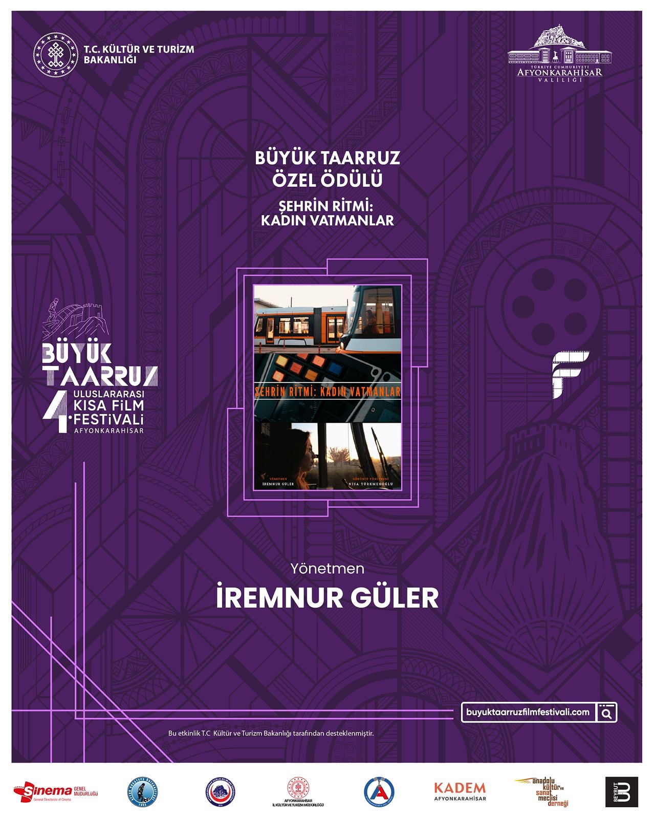 Festival Komitesi tarafından geçtiğimiz yıl alınan karar doğrultusunda yalnızca Afyonkarahisar’dan başvuran filmlerden birine verilmesi kararlaştırılan “Büyük Taarruz Özel Ödülü”ne, “Şehrin Ritmi: Kadın Vatmanlar” adlı belgesel filmiyle Sinema ve Televizyon Bölümü son sınıf öğrencimiz İremnur Güler layık görüldü. 2025 yılı mezunlarımız Barış Harputluoğlu “Koleksiyonerliğe Adanmış Bir Ömür: Mehmet Nail”, Yasir Coşğun “Şefin Yolculuğu”, Yiğitcan Uslu da “Ateş ve Çelik” filmleriyle finalist olma başarısı gösterdiler. Mezunlarımızı ve öğrencilerimizi ayrı ayrı kutluyoruz.
