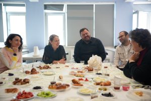 Fakültemizde gerçekleştirilen, kahvaltı programını da içeren buluşmada Dekanımız, aynı zamanda İç Mimarlık ve Çevre Tasarımı Bölüm Başkanımız Prof. Dr. Şerife Ebru Okuyucu, Bölüm öğretim elemanlarımız ve mezunlarımız, keyifli bir buluşma gerçekleştirerek anılarını paylaştı, bölümün gelişimine dair görüş alışverişinde bulundu.