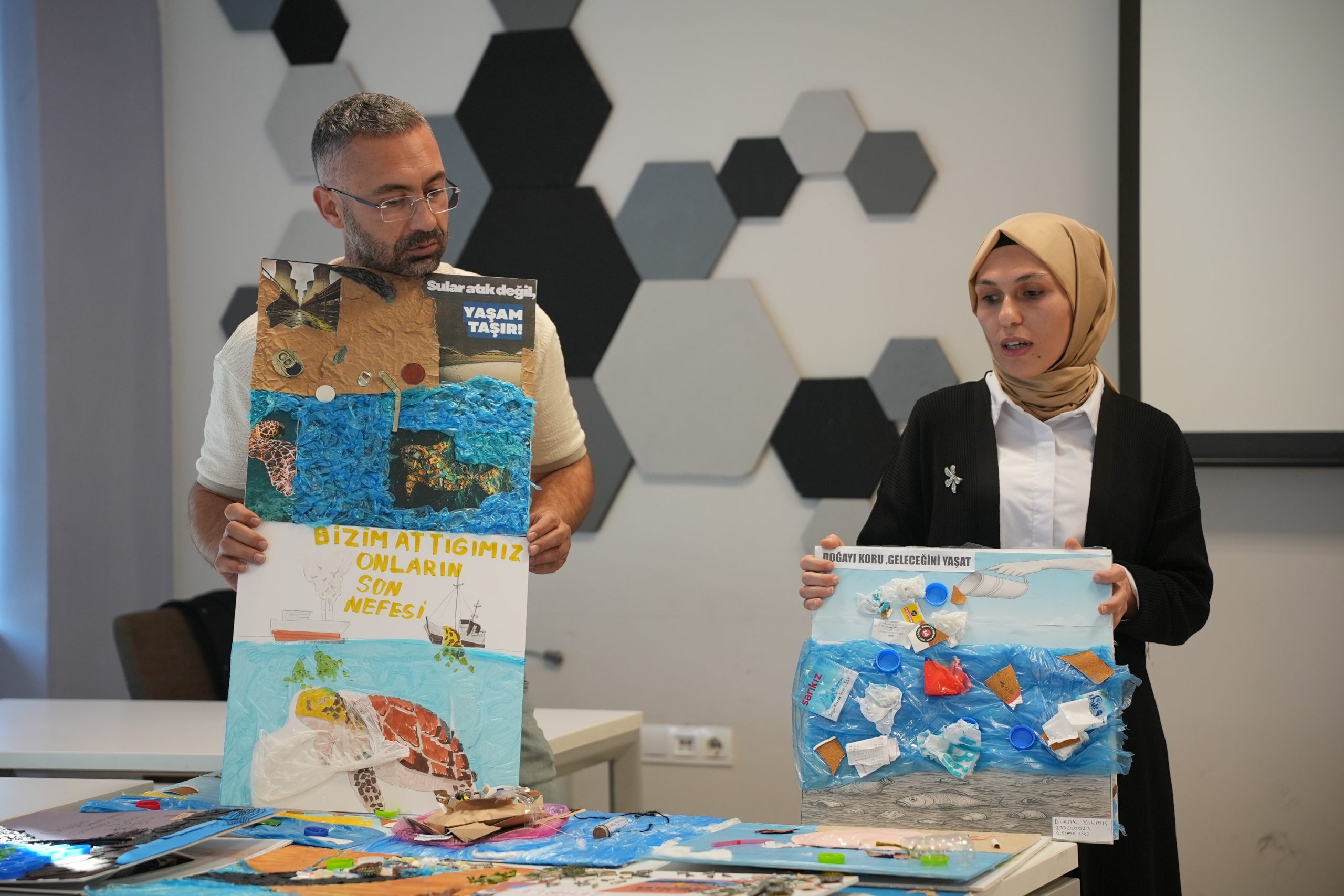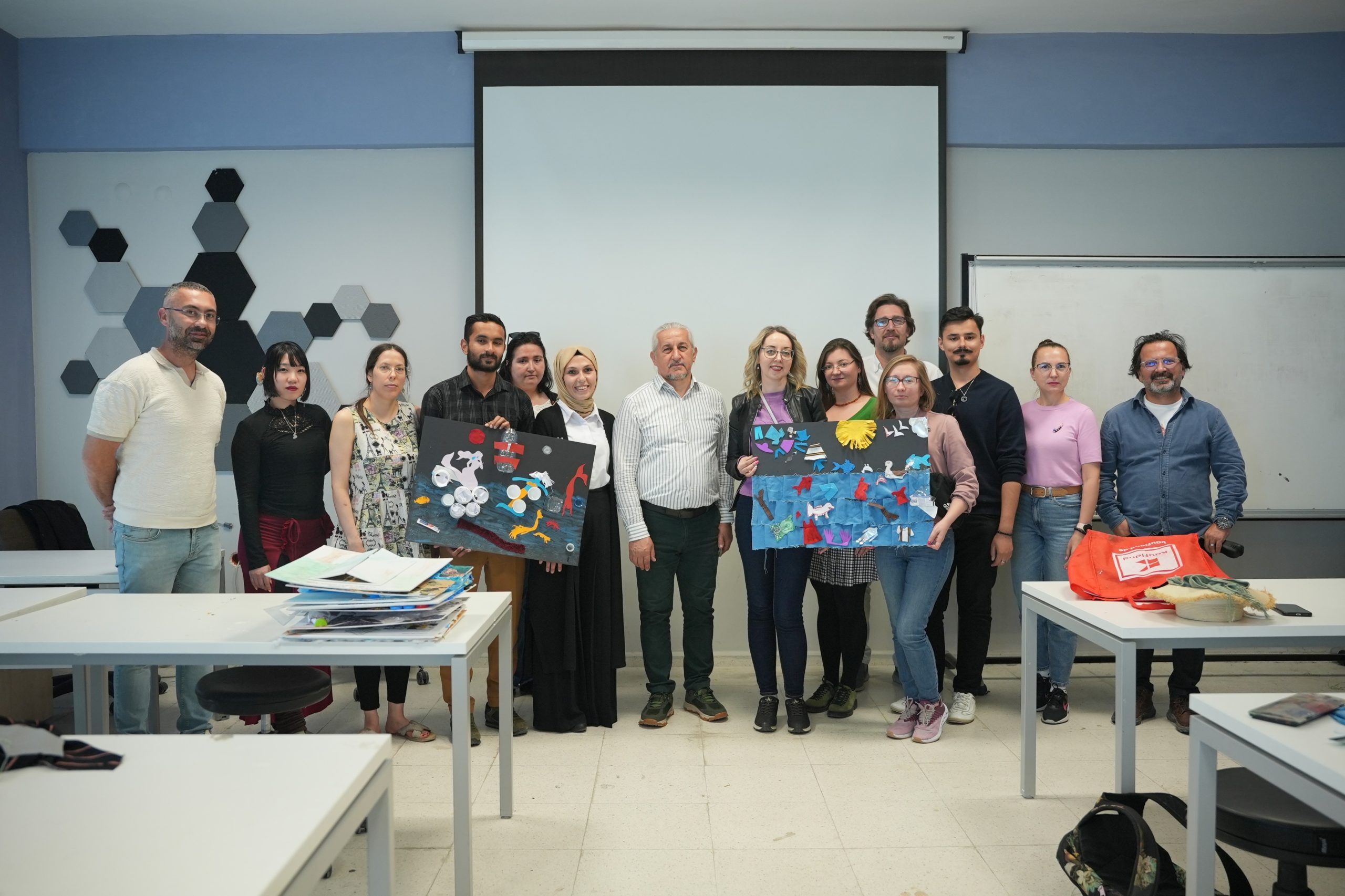 Eğitim Fakültesi öğretim üyesi Prof. Dr. Gürbüz Ocak’ın yürüttüğü projenin paydaşı ülkelerden (Fransa, Letonya, Polonya ve Romanya) gelen katılımcılar, atık malzemeleri kullanarak çevre kirliliğini anlatan kolaj çalışması gerçekleştirdiler. Çevre sorunlarına ve atık malzemelere ilişkin farkındalığı amaçlayan program, misafirlerimizin Fakültemizde yaptıkları gezinin ardından toplu fotoğraf çekilmesiyle sona erdi.