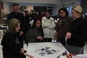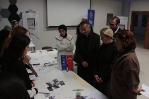 Söyleşinin ardından Prof. Dr. Bilgehan Yılmaz’ın koordinatörlüğünde Fakülte binamızda “Engelli Bireylere Yönelik İç Mekân Tasarım Atölyesi” gerçekleştirildi. Beyin felci geçiren İrlandalı yazar, ressam ve şair Christy Brown’un otobiyografik romanından uyarlanan “My Left Foot/Sol Ayağım” adlı filmden esinlenmeleri istenen öğrenciler, Fakültemizdeki bir akademisyen ofisinin tasarımını ve mekân yerleşimini çalıştılar. Öğrencilerimiz, atölye boyunca hem öğretim elemanlarından hem de ilgili dernek yöneticilerinden öneri ve tavsiyeler aldılar.
