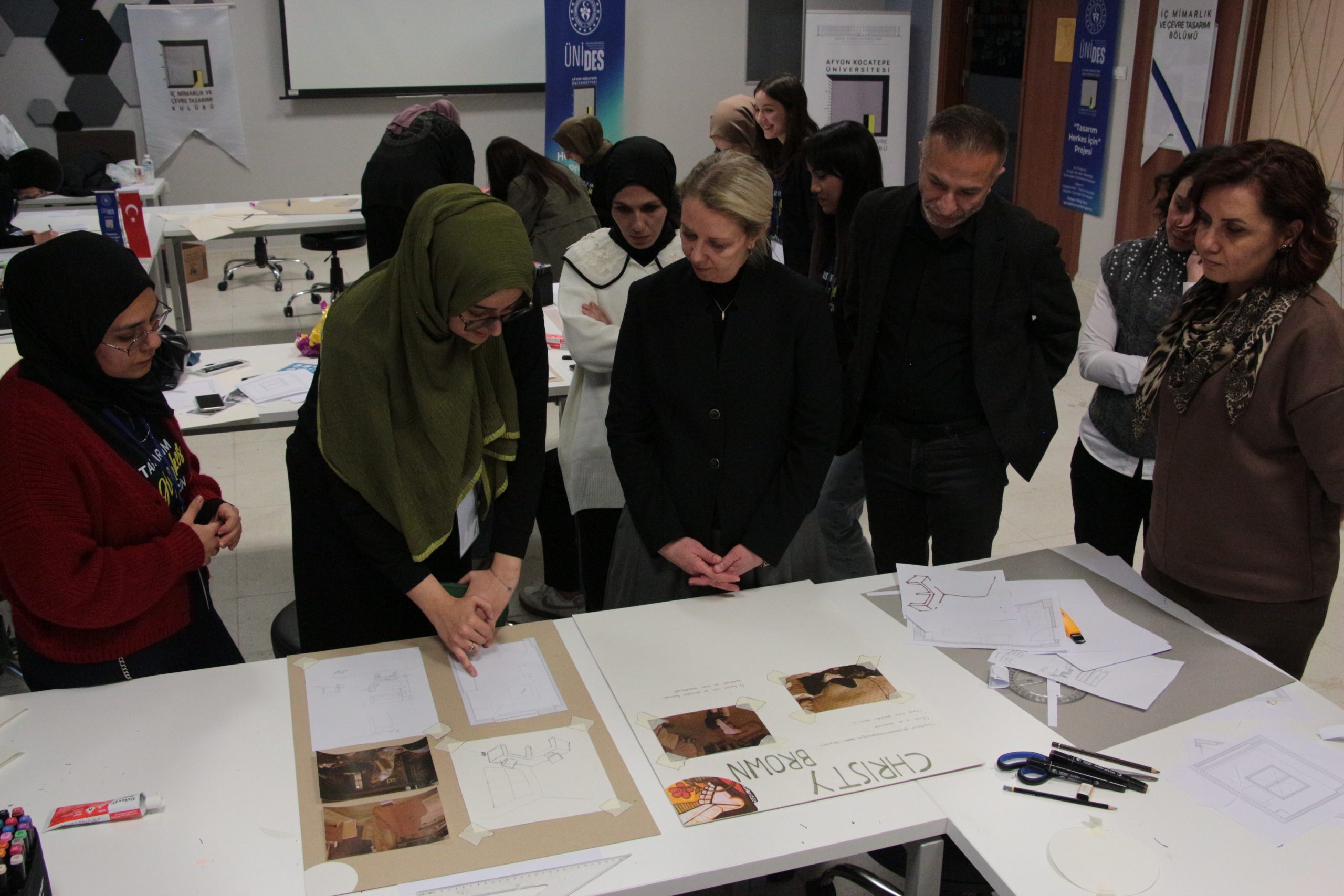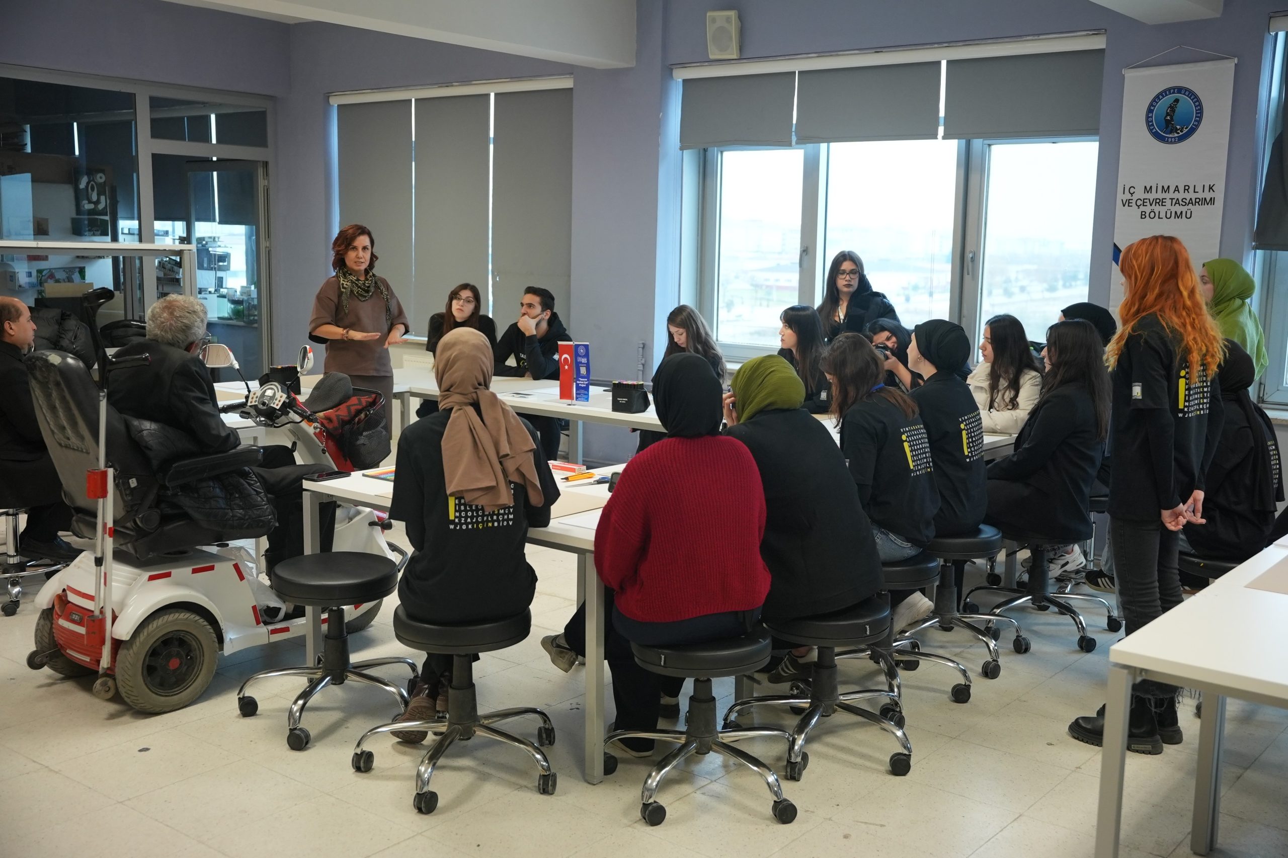Söyleşinin ardından Prof. Dr. Bilgehan Yılmaz’ın koordinatörlüğünde Fakülte binamızda “Engelli Bireylere Yönelik İç Mekân Tasarım Atölyesi” gerçekleştirildi. Beyin felci geçiren İrlandalı yazar, ressam ve şair Christy Brown’un otobiyografik romanından uyarlanan “My Left Foot/Sol Ayağım” adlı filmden esinlenmeleri istenen öğrenciler, Fakültemizdeki bir akademisyen ofisinin tasarımını ve mekân yerleşimini çalıştılar. Öğrencilerimiz, atölye boyunca hem öğretim elemanlarından hem de ilgili dernek yöneticilerinden öneri ve tavsiyeler aldılar.
