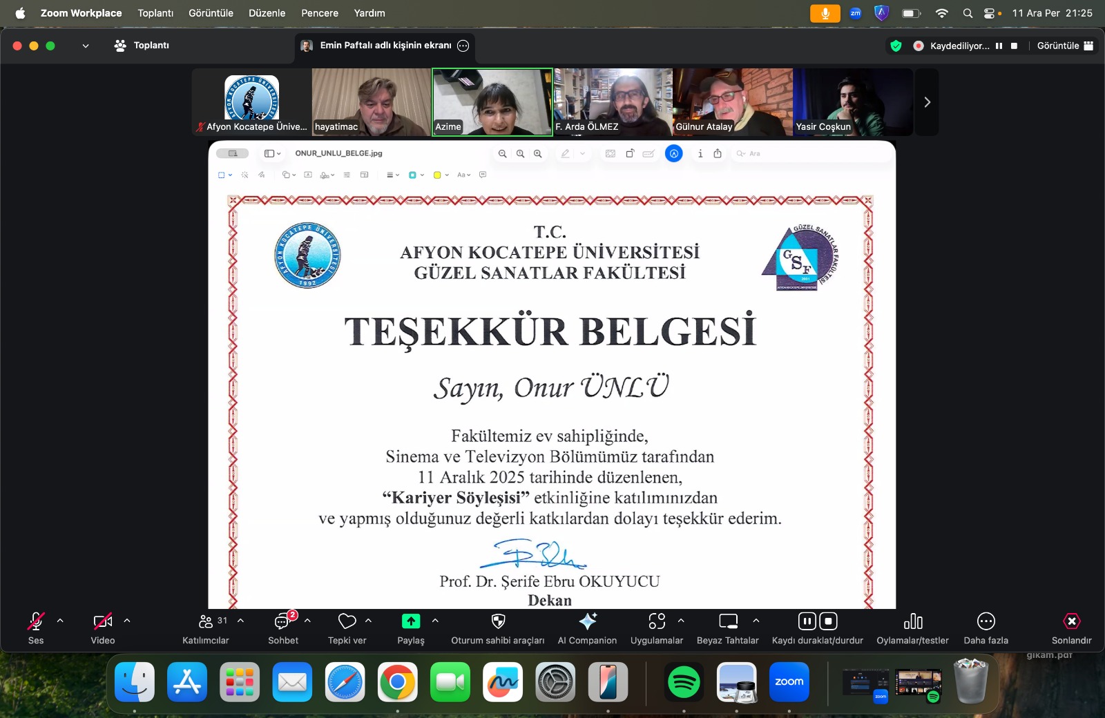 Dekanlığımız ev sahipliğinde, Sinema ve Televizyon Bölümümüz tarafından düzenlenen “Kariyer Söyleşisi”, 11 Aralık tarihinde, çevrim içi ortamda gerçekleştirildi.